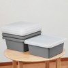 ECR4Kids Square Bins with Lids bring accessibility and ease to the classroom and home. The 4-pack of plastic containers with translucent lids is perfect for keeping classroom supplies, sensory toys, manipulatives, art supplies, kitchen and office items, books, and reading material contained and clutter-free. Create functional early educational and home spaces with storage bins organized by color or label. Store materials for learning centers or stations. The curved interior makes it easy to remove contents and non-snap lids are convenient for children and adults to access supplies. Introduce the concept of cooperative play to children by arranging bins indoors or outdoors. This setup encourages side-by-side play, fostering social interaction and teamwork among young participants. Bins provide a dedicated space for water play, kinetic sand, and various sensory materials. If used with the sensory table, bins snap into place and stay secure during tactile activities. Secure lids to keep contents protected. When learning time is over, educators and students can easily transport the bins with rounded edges. The bins with lids stack for vertical storage, or when empty, nest to save valuable classroom space. Use as replacement bins for ECR4Kids Sand and Water Tables, sold separately.