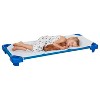 Naptime is a daily ritual in early childhood facilities including daycares and preschools. Stackable Kiddie Cots, in a standard size of 52”, provide comfort for children and convenience for teachers. Kids will sleep comfortably on their individual cot; designed for everyday use in classrooms, home daycares and schools. Daily sleep routines help developing brains work to their full potential and foster a happy learning environment. Toddlers and children are elevated off the ground for a supported surface with air circulation below, keeping kids comfortable and cool. Lightweight cots stack up to 20 high for compact classroom storage, saving valuable classroom floor space. Sturdy cots are constructed with powder-coated steel poles, durable plastic corners, and a breathable stretch-resistant mesh that’s tightly fitted to the frame with minimal gaps to protect little fingers and toes. Children can stretch and get comfy during their nap, while feeling stable on the taut mesh. Adult assembly is required, use hook and loop to secure the mesh to the poles. Pair with ECR4Kids rest time accessories including cot sheets, blankets, and nap map companions with pillow, sold separately. Portable nap cots are GREENGUARD [GOLD] Certified for low VOC’s, CPSIA compliant and feature rounded edges for added safety.