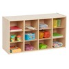 Keep your early childhood environment uncluttered with the ECR4Kids Streamline 12 Cubby Tray Storage Cabinet. Ideal for small spaces, kids and adults can organize and store toys, games, building blocks, and school supplies that may otherwise be forgotten. Designed to grow with little ones, this storage cabinet helps parents, teachers, and educators sort and store small items and keep them within reach. Give children their own separate cubby at school to store art projects, individual items, homework, and more. Pair with ECR4Kids Scoop Front Storage Bins to keep little things contained and off the floor; bins are sold separately. The low-profile open-face shelves encourage children to select their favorite activity independently and confidently and clean up when playtime is over. Introducing organizational skills at a young age helps kids handle information in a logical way, prioritizing activities and building self-esteem. Constructed from sustainably harvested birch plywood with a durable finish sealing the wood surface and resisting scratching. A UV inhibitor helps furniture resist ultraviolet light and yellowing. Natural birch plywood is extremely durable and will hold up to everyday use in a classroom, homeschool, or library.
