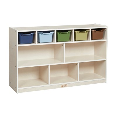 ECR4Kids Streamline 15 Cubby Tray Cabinet with 15 Scoop Front Storage Bins, 3x5, Natural, Earthtone