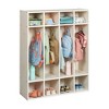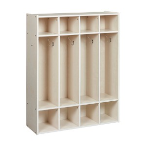 Maximize space and keep your room organized and clutter-free with the ECR4Kids Streamline 4-Section Coat Locker. The wooden locker features four long compartments with eight double coat hangers for sweaters, toddler backpacks, and umbrellas. Give children their own separate cubby storage to keep art projects, homework, and personal belongings organized. Pair with ECR4Kids Scoop Front Storage Bins to keep little things contained and off the floor; bins are sold separately. Use in a children’s bedroom to organize dress-up clothes, costumes, accessories, hats, gloves, and more. The low-profile open-face shelves encourage children to care for their belongings and clean up independently. Constructed from sustainably harvested birch plywood with a durable finish sealing the wood surface and resisting scratching. A UV inhibitor helps furniture resist ultraviolet light and yellowing. Natural birch plywood is extremely durable and will hold up to everyday use in a daycare, or preschool, and is great for the home. Combine the Montessori storage with other ECR4Kids Birch Collection furniture pieces to complete the space.