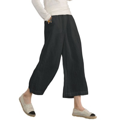 Stay comfortable and stylish all summer long with these breathable linen-cotton cropped pants. They feature a relaxed high-waist design for a flattering fit, an adjustable drawstring to customize your comfort, and a wide-leg silhouette that offers plenty of room to move. The convenient side pockets add practicality, making them perfect for casual outings or relaxing at home. Crafted from easy-care fabric, these pants are machine washable, ensuring hassle-free wear. Whether you're heading to the park, running errands, or lounging in the sun, these versatile pants are a must-have for warm-weather comfort.