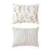 The Eddie Bauer Wildflower comforter set offers a vibrant and rustic charm to any bedroom. The comforter features a delicate, artistic arrangement of colorful Wildflowers combining soft florals, vibrant poppies, and gentle lavender sprigs scattered across a light natural ground. Reversing to a subtle pinstripe in green on an off-white ground, it evokes a great sense of balance. The colors combine a range from red and yellow to rich purple and blue, creating a serene yet lively staple. Made from a soft, long-lasting cotton slub fabrication, texture and dimension is easily recognized. Designed with easy care in mind, the comforter set is machine washable, making it ideal for everyday use. Each set includes a generously sized comforter with matching sham(s).