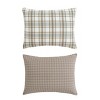 The Eddie Bauer Ashland Plaid comforter brings classic style and cozy comfort to your bedroom with its timeless design and practical features. Set against a soft cream ground, the plaid pattern blends warm brown and cool grey tones for a refined, rustic look that complements a variety of interiors. The comforter reverses to a solid cream ground. Crafted from 100% cotton with a 100% polyester fill, it provides a medium weight ideal for year-round use. The set includes side European closure shams that mirror the comforter’s reversible design, allowing for a cohesive, polished look. Easy to care for and machine washable, this comforter set is a functional choice for effortless bedding updates.