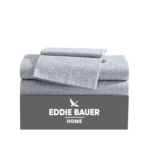 Update your bedding ensemble with a new cotton sheet set from Eddie Bauer. Crafted with crisp and breathable cotton, each piece in this set boasts a matching pattern for a unified look that complements your décor's color palette. The machine-washable material allows for an easy upkeep of this sheet set, which conveniently includes one flat sheet, one fitted sheet, and two pillowcases (one for twin sizes). 100% cotton percale construction, with a crisp and breathable feel. Set includes a fully elasticized fitted sheet which prevents slipping from the mattress and ensures a perfect fit. Machine washable for easy and convenient care. Made thoughtfully and sustainably using oeko-tex dyes.