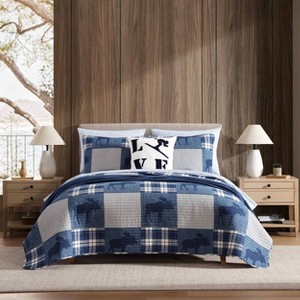 Eddie Bauer Moose Plaid Pinstripe Patchwork Quilt Bedding Set Blue