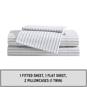 Update your bedding ensemble with a new cotton sheet set from Eddie Bauer. Crafted with crisp and breathable cotton, each piece in this set boasts a matching pattern for a unified look that complements your décor's color palette. The machine-washable material allows for an easy upkeep of this sheet set, which conveniently includes one flat sheet, one fitted sheet, and two pillowcases (one for twin sizes). 100% cotton percale construction, with a crisp and breathable feel. Set includes a fully elasticized fitted sheet which prevents slipping from the mattress and ensures a perfect fit. Machine washable for easy and convenient care. Made thoughtfully and sustainably using oeko-tex dyes.