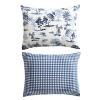 The Eddie Bauer Vintage Forest Toile comforter set from Eddie Bauer offers a timeless and rustic charm, perfect for adding a nature-inspired touch to any bedroom. Made from a soft, long-lasting cotton slub fabrication, this set provides both comfort and style, featuring a classic toile pattern that evokes the serene beauty of the outdoors in shades of blue illustrating Foliage grounded with a blue and white buffalo check plaid reverse. Designed with easy care in mind, the comforter set is machine washable, making it ideal for everyday use. Each set includes a generously sized comforter and matching shams, creating a coordinated look that will enhance your bedroom décor with its rustic elegance and practical appeal.