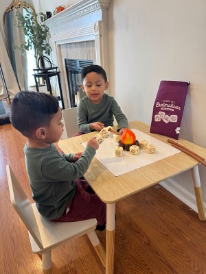 [This review was collected as part of a promotion.] I can't tell you how much my boys and I enjoyed this game of campfire chatmallows! It's so fun watching them learn how they make up stories on what they see in the blocks. It has taken my toddlers imagination to the next level! They are able to expand their imaginary play and they come up with with the cutest stories. We have been loving this toy for for family quality time and we also take it on the go.
