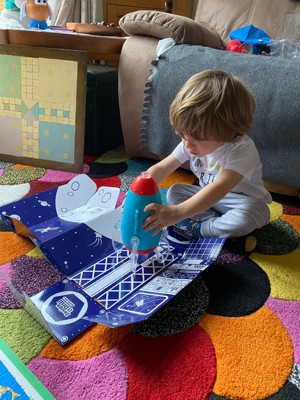 My son was eager to dive in and quickly start taking this robust little rocket apart and using the drill to put it back together again. He found it a bit tough to get the nose cone and base on, so I had to help him with that. It was also a little tricky for him to get the dog to slot into the rocket otherwise he really enjoys playing with it. I can see how the way he plays with it will develop and change as he gets older. He's already started to become more creative with it using the launch pad and moon as a backdrop to his space fuelled stories! The box opening out into the backdrop it such a fantastic idea, we loved it.