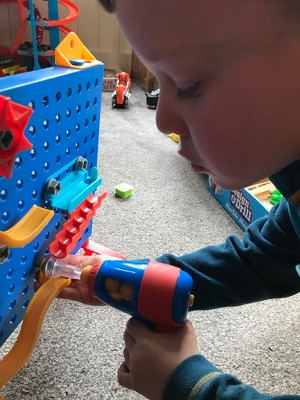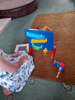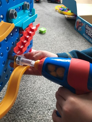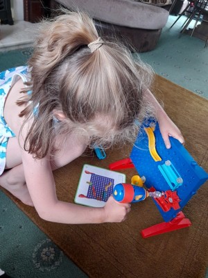 - BUILD FINE MOTOR SKILLS! Select and place a bolt or maze piece, aim the toy drill, and squeeze the trigger to hold it in place - and develop the fine motor skills needed to tie shoes and hold a pencil - INCLUDES: 12 x 10” Design board, 15 track pieces, kid-friendly power drill, 20 bolts, ball, and 10 double-sided maze challenge cards. Drill requires 3 AAA batteries (not included). Drill patent pending