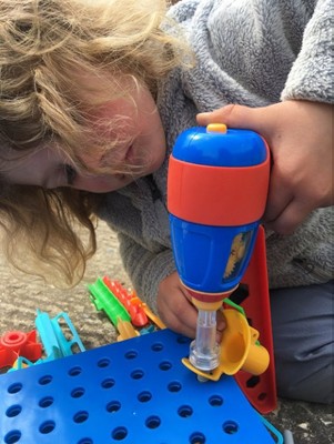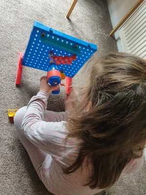 My 5 year old daughter really enjoyed playing with this with her Dad... and her Dad got pretty involved in it too! The drill was really easy for her to use and is great for enhancing fine motor skills. The picture cards it comes with to help you set up different mazes were helpful and easy to use. It's handy that you can mount it to a wall to make it sturdier. I would say that younger children playing with this would definitely need some support or supervision to make the mazes aswell as prompting but definitely a good one to do as a parent and child activity.