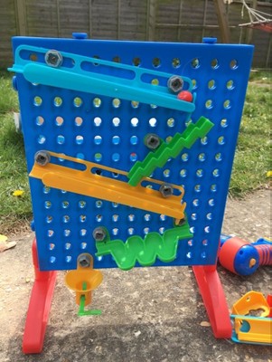 We love building and making marble runs in our house, my 4 year old also loves her drills set so to get a two in one toy was great. Its straightforward to do, unpack the box and your away. She found the drill a little tricky to use at first but soon got the hang of it. Its great for problem solving, at first she didn't quite line the pieces up so the ball dropped, after a few attempts we decided to follow the instruction cards, she did this easily. She then started moving things around to create her own run. Its great that you can buy extra sets to extend the run, the pieces are also nice bold colours and seem sturdy. Later my 6 year old had a go, she could put it all together easily but spent ages moving things around to make the best run!! She wanted to use as many pieces as she could on the board. This will definitely be coming out again and again!!