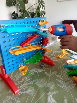 [This review was collected as part of a promotion.] My son loves this educational toy. He enjoys using the toy drill to screw in the screws.