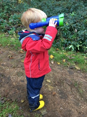 These binoculars have proved very popular with both my children (aged 3 and 5). I have also taken them to my forest school groups in the woods with children from 2 to 12. Everyone was initially intrigued by the ear pieces, as soon as they use them they all gave it a 'wow' (including the adults!). Not only do they magnify vision but also sound, great for listening to nature from a distance. A few comments about how it can be used as a spy toy too – its also great for listening in on conversations!! It has encouraged a lot of play about listening and seeing how far away a message can be heard. The children enjoyed looking for birds and listening to the different songs and noises they could hear in the woods. Although they are somewhat bulky they are easy to handle and use for all ages. They have a safety strap if carried around the neck and are also very robust. One great feature is having a set focus, although my children love using binoculars they usually end up turning them round the wrong way as they find it too difficult to get any focus manually (by turning dials) , but these are a lot easier to use so keep the children interested for longer. Overall this is a great product for children, its very easy to use, the sound magnification is a perfect addition which encourages addition exploration of the natural world. All the children in the groups I have taken it too have been excited to use it.