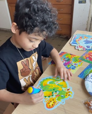 [This review was collected as part of a promotion.] It's a wonderful set for gifting, my 4years old loves to play with the cards all day. Comes with multiple cards and an applicator to work on and it's so fun for the kids! Working on hand eye coordination, dexterity and making decisions to come up with the matching colors, very educational and entertaining.