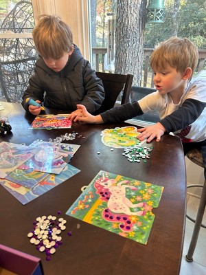 [This review was collected as part of a promotion.] My 4 and 6 year old had a great time using the Jumbo Gem Kit. We loved how easy it was to use as there us no set up time, you just open and go. I love that it was not messy! The gems hold very well to the glue spots. The designs on the card are pretty cool and good for girls and boys. The gems are big enough that I did not have to worry about a child swallowing them. The tool to pick up the gems provides fine motor skills also.