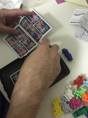 This compact game is a brain teaser! It is perfect for brain breaks while working from home. It's the gift that keeps on giving because there are multiple puzzles to complete. The pieces are amoeba-like and interesting to piece together. We would have preferred playing cards instead of having all the puzzles located side by side in a booklet. We took this with us on a picnic with friends and kept it in our diaper bag to whip out if we needed entertainment while on the road. Definitely is easy to travel with! Our friend's 4th and 7th grader loved it!