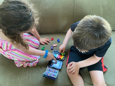 Cosmic Kanoodle is an excellent game to build spatial awareness and problem solving skills. I love it for my 6 and 5 year olds. They can work together by asking for the piece they need to solve puzzles or work alone. We are using this during math choice time with distance learning and it keeps both kids engaged (kindergarten and first grade). This will also travel well and I love that the pieces fit into the case for neat storage. My daughter asked if we could add it to our restaurant activity kit when we return to dining out. I'll admit that I played a few rounds myself!