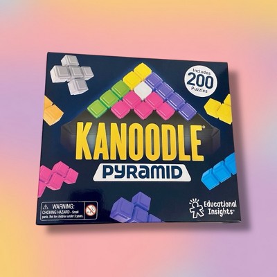 Take puzzling to new heights with Kanoodle Pyramid! This oversized, single- or multi-player version of our award-winning brain teaser and TikTok viral hit challenges your spatial reasoning skills with 200 captivating puzzles in both 2D and 3D configurations. Simply pick a design from the puzzle book, place the puzzle pieces into position as shown, then fill the empty spaces with the remaining pieces. Kanoodle Pyramid features a unique tabletop board that doubles as storage for the oversized pieces and provides unplugged fun for the whole family, ages 7-107. Play anytime, anywhere! Includes 9 puzzle pieces, illustrated puzzle book, and board.