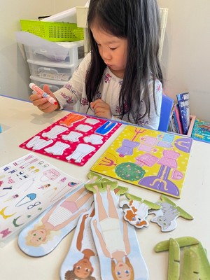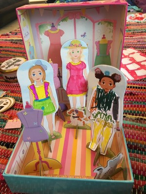 I loved this product! What a great concept of using sticky notes as the clothing to color and coordinate dressing the dolls. The utilization of double sided figures and including pets is genius. EI has done a fabulous job making the product boxes able to be part of the interactive play as well as their product storage. Items are sturdy, not like normal paper dolls that are flimsy. I think this product could easily offer dressing ideas, combinations of clothing and color coordination as well for young or challenged minds. It's super cute, fun and I would recommend it for sure! As a crafter,