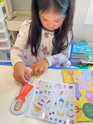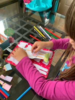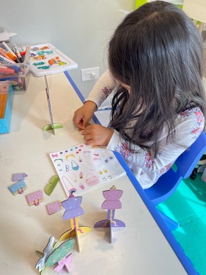 My daughter loved this craft! It kept her engaged for some time and her 8 year old sister got involved too. They had so much fun decorating and coloring the different articles of clothing and switching up the outfits and accessories. All the pieces are very thick and sturdy so they can be played with over and over again. It helps younger ones with fine motor skills as well, especially when taking off and placing the smaller stickers. Would make a great gift for little ones who love dolls and crafts!
