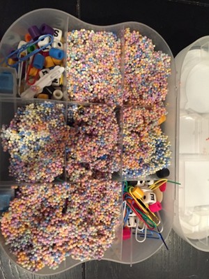 My daughter's had Playfoam before, but the fact that this comes in a carrying case is everything. The case has 9 compartments so you can keep the colors separate (not my child--all the colors were mixed in minutes) or even put other small toys that you usually step on. You can store craft material to make an on-the-go craft kit. The art on the front is colorful and fun, too.