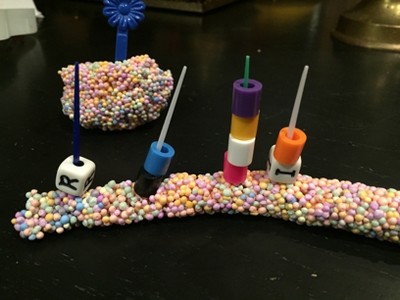 So you hate the thought of play-dough in your home...the smooshed pieces in your carpet, digging it out of sneaker with a toothpick like it's an excavator but know and understand the benefits and importance of squeezing, pushing, pulling, twisting, smooshing, and creating for the very young to the very old. Educational Insights has bridged the gap regarding the mess of messy play. A compromise if you are an anti-play dough household. Floam ROCKS! This particular box is an "on the go" version! This is the perfect "to go" play activity to keep your child, young and old, engaged in meaningful experiences in the car, at a restaurant, doctors office, or any other area that doesn't fit their "waiting" tolerance (just say no to electronics). To throw a curve ball we adapted this kit to scaffold creativity, manipulation, fine motor, visual motor, language, academics and play by adding "loose parts". Don't panic, just open your junk drawer or pick up your couch cushions and you will find a plethora of "loose parts" to add. We added, toothpicks, paper clips, buttons, perler beads, alphabet beads, coffee stirrers, and clothespins. Also, colors are meant to be blended and explored...it's ok if they mix them!
