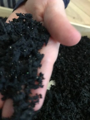 [This review was collected as part of a promotion.] My kids loved this. I put it in a large pan and they played with all their construction vehicles in it. Scooping and dumping. Yes it was a bit messy but what I loved was I could just vacuum or sweep it up.