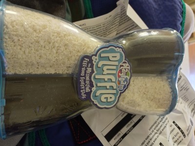 [This review was collected as part of a promotion.] My 3-year-old loves this stuff! I had bought her a lot of kinetic sand when we started our sensory bin collection, but she got easily frustrated with it because it was hard for her to manipulate. This Pluffle is super easy to work with and is very fluffy. I will be buying her more in different colors now that I know how much she enjoys playing with it!