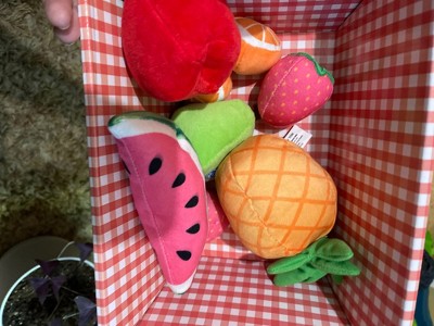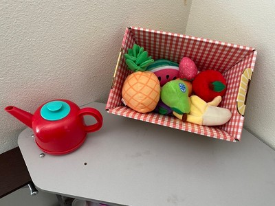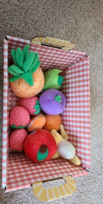 [This review was collected as part of a promotion.] This plush fruit basket is so cute. Each fruit is well made, soft, and perfect for little hands. I love the bright colors used and the detail that went in to making each fruit look like the real thing. The only downside I have is that the cardboard picnic basket is not very durable and will likely break. This toy would be a 5 star review if the basket was wooden or metal. Overall, they are fun to play with and we love them.