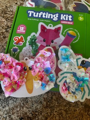 Kiss the mess and stress of other art projects goodbye! Elevate the poke-in fabric art trend to a mess-free, satisfying craft with the kid-friendly tufting tool, perfect for ages 5+. Follow simple, step-by-step instructions to add 3D texture to nature-themed garden magic design cards. This hands-on set develops fine motor, color matching & patterning skills, and encourages self-expression & independence. Once all the cards are decorated, use the loops at the top to hang them up right away! Includes tufting tool, 12 cards, and 800 tufting fabric pieces. No glue, no scissors, and no parental prep work required!