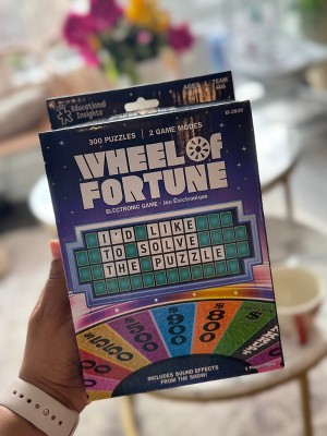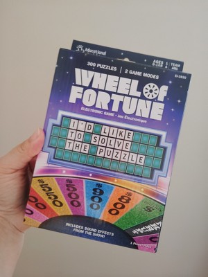 [This review was collected as part of a promotion.] I received this product to test out and I had to fight my kids for it! This is so fun! I love the show Wheel of Fortune so this was a blast. I also loved that it was a fun game that my kids had to use their minds to play with, not just a mindless electronic game. It's also great for travel, since it's so small. I would highly recommended this game!