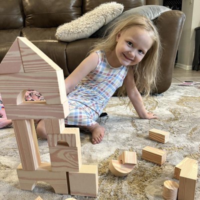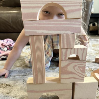 Love that these look like wood and are foam instead! Easier for kids to hold and play with without hurting themselves when the blocks come crashing down.