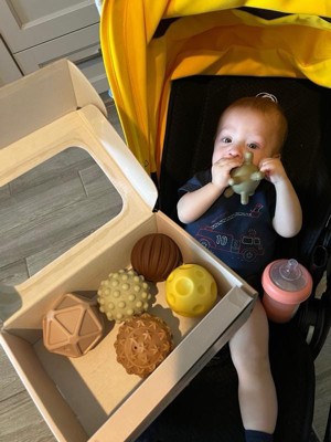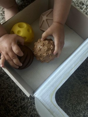 [This review was collected as part of a promotion.] My son loves his new sensory balls to play and chew on. He loves moving them around with his tiny fingers and looking at different designed. He is so cute to watch him trying to figure out why they all look different. He also loves throwing them thinks it’s funny. His favourite is the teether one he is so fascinated with it and it’s perfect right now since he is teething. The only downside to these is that they have a hole and I would be scared of mold if he keeps putting all of them into his mouth. Otherwise they are very cute sensory toys to play with and I love the neutral colors.