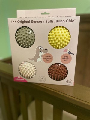 - WHAT’S INSIDE: A set includes four 4" boho chic sensory balls for toddlers 1-3. Colors may vary. Supplied fully inflated but can be re-inflated via a built-in valve. Recommended for kids aged 6 months and up!