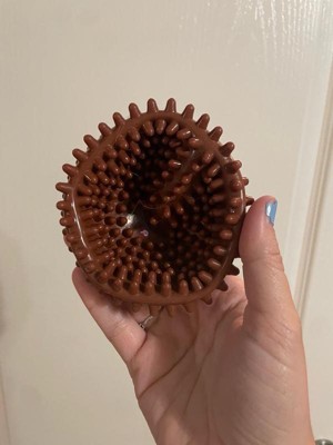 [This review was collected as part of a promotion.] The size of the ball is perfect for little baby hands and the spikes make it easy for my baby to grip. I liked the packaging it came in because you could see and feel the product before opening it. The only thing I did not like was the little pulls of rubber on the ball. Although the pulls were not large to cause a choking hazard it left me a little nervous about if the baby consumed it what would happen. But over all good product just inspect before giving to baby.