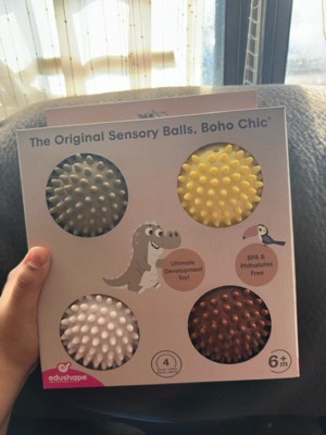 [This review was collected as part of a promotion.] The Edushape Boho Chic Sensory Balls are fantastic! My little one absolutely loves them. The different textures and colors keep them engaged and entertained for hours. They're the perfect size for tiny hands to grasp and play with. Plus, they're super durable and easy to clean. These sensory balls have been a great addition to our playtime routine. Highly recommend for any parent looking for fun and educational toys!