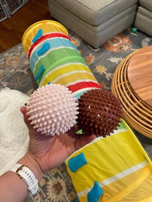 [This review was collected as part of a promotion.] My kid loves these balls. They’re so easy to grip for tiny hands! They’ve even started throwing and rolling these balls because they can grip them! They’re great!