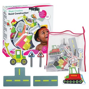 Our Road Construction Magic Creations Play Set will allow children to create their imaginary scenes right on bathroom tiles turning bath time into playtime! Bond with your little ones without worrying about the clean up. Our easy to grab foam pieces stick to any smooth surface once wet, are easy to clean up and allow you and your child to play, imagine and create many stories and memories to cherish while developing fine Motor Skills, Hand-Eye Coordination and encouraging Visual Sensory Development. These colourful sets come in a variety of fun themes to choose from. Product Features: 26 foam pieces; Bag for easy storage and clean up; Contains small parts. Recommended for kids aged 3 and up.