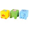 Chewy and bouncy, these fun critter blocks are perfect for your little explorer! Big enough for play but not too large for smaller hands, these uniquely shaped animals stimulate physical motor senses. Each critter features rounded corners for safety and encourage hand-eye coordination development through tossing, sorting, and stacking. Set includes six blocks: Hippopotamus, Duck, Pig, Lion, Frog, and Elephant. Blocks measure 2.25" x 2.625" x 2.25" each.