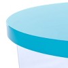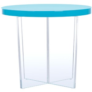 Introducing the Edwards acrylic accent table in a stunning turquoise shade. This piece brings a vibrant pop of color to your living space, harmonizing effortlessly with various decor styles. The sleek acrylic construction gives the table a modern and airy feel, making it a versatile addition to any room. Its minimalist design is perfect for complementing your favorite accents or simply providing a stylish surface for your essentials. Whether you place it beside a sofa or use it to showcase a plant, this table offers both function and flair. Embrace the elegance and simplicity of the Edwards acrylic accent table.
