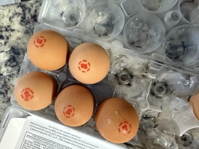 Ink from label on eggs leak through even when boiled.
