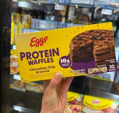 - Chocolate chips baked into fluffy Eggo brownie-flavored waffles; Sweet, protein-packed bite perfect for a part of breakfast or a quick snack