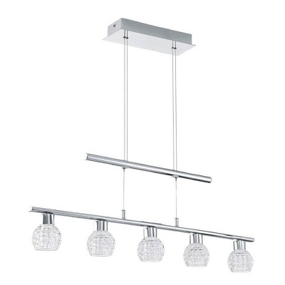 Add elegance to your space with the simple yet striking Cartama LED pendant light in chrome. Four satin acrylic heads are hung from a chrome finished bar for a sleek contemporary look. The integrated LED technology offers warm white light, smooth dimming capabilities and energy savings. This pendant light will provide the perfect illumination for the kitchen, dining room or home office. Integrated LED / Adjustable Hanging Length / Transparent Hanging Cord / Clear & Satin Square Acrylic Shades. ,