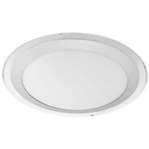 Decorate your space with Eglo's Competa-2 LED ceiling light! Its contemporary style will compliment any home. Featuring a white and silver rim surrounding a clear acrylic shade. Suitable for damp locations. Integrated LED / Rated For Damp Locations / White Acrylic Shade / White, Silver & Clear Frame. , Material: Steel, Finish Color: White/Silver/Clear, Width: 13.39", Height: 3.58", Depth: 13.39", Lamping Type: LED, Number Of Bulbs: 1, Wattage: 23 Watts, Cri: 80, Color Temperature: 3000 Kelvin, Lumens: 2000, Dimmable: Yes, Moisture Rating: Damp Rated