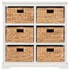 - Made of solid wood frame and manufactured wood top, Includes 6 stylish, natural water hyacinth woven baskets, quality built with metal frame, one handle easy for carrying