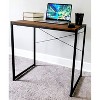 This multifunction rectangular home office writing study desk features a coffee-colored top and a black powder-coated steel frame, making it a versatile addition to any workspace. Designed with a spacious open top, it can accommodate a laptop, printer, or serve as a breakfast or study area. The extra X-shaped steel frame provides sturdy support, while the compact 30.75-inch width and 18-inch depth make it suitable for a variety of settings. Whether you need a dedicated workspace or a multipurpose table, this desk offers a practical and stylish solution for your home office needs.
