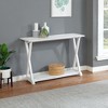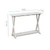 This piece is designed to add a beautiful farmhouse style to any decor, Created with innovation in mind to bring a spacious quality built product. It's made from solid and engineered wood and has two X-shaped legs and an open silhouette for a breezy country cottage look. The tabletop has a planked design that adds to the farmhouse charm. Plus, the open bottom shelf gives you a spot to display vases or keep a collection of storage baskets. It measures 42" wide and 14" deep, so it can fit in cramped quarters.