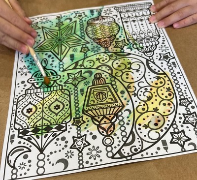 Filled with images showing different aspects of the Muslim festival of Eid al-Fitr, from families buying new clothes and decorating their homes and to scenes of fireworks, looking for the new moon and delicious festive food. Just brush water over the black and white designs to reveal an uplifting array of vivid colors. A mess-free way to keep children busy. Simply tuck the waterproof flap under each page as it's painted, to stop water from seeping through to the rest of the book.